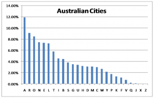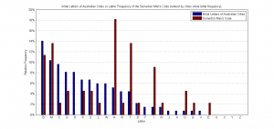 To test this hypothesis we will survey as many people as possible for 50 random letters each (Let this be known as task 1A). We will then repeat the experiment with intoxicated people and compare the difference and the distribution itself with the Somerton Man's code. Some preliminary results of this have been shown in section 7.2 (above).