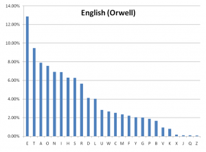 The letter frequency distributions of selected categorical lists and of the eBook "1984" by George Orwell were calculated using some custom java-based software modules (see appendix A). The resultant frequency plots are shown below. This data will be used in many sections of this project.